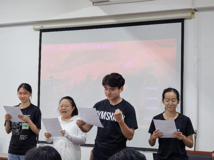 为庆祝中华人民共和国成立75周年,弘扬红色精神,2024年9月28日下午,经济学院金融系本科生第一党支部在学院222党员活动室举行了“红色华章,吟颂祖国万年春”主题党日活动,吸引了支部成员的积极参与。党支部成员划分为各个小组,各组以丰富多彩的形式演绎了中华人民共和国成立以来的红色故事,展现了他们对祖国的热爱和对革命先烈崇高的敬意。