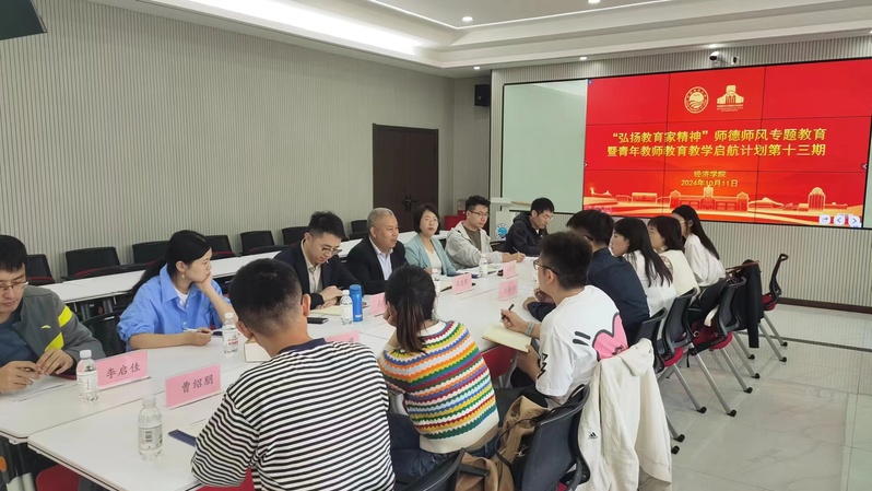 10月11日,经济学院“弘扬教育家精神”师德师风专题教育暨青年教师教育教学启航计划第十三期在学院112会议室顺利举行。本次活动邀请了经济学院党委书记张念宾对青年教师进行师德师风教育专题培训。培训由经济学院教学副院长王垒教授主持,经济学院党委副书记、副院长迟瑞娟,学院近五年入职的青年教师参加了会议。