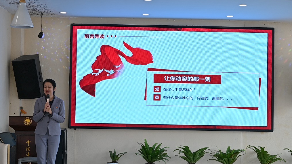 王瑾敏从一名基层金融人的视角,从自身参加党的二十大的经历与感受出发,用鲜活的事例、真切的情感、生动的语言,全面回顾了党的二十大盛况,重点展示了新时代取得的伟大成就,深刻阐释了党的二十大精神和党的二十届三中全会精神内涵。“跨越百年,党始终敢于牺牲自己,让中华民族能够伟大复兴。”——王瑾敏分享了中共党员们的先进事迹,这种舍己为人的大义品质跨越时间一代代传承下来,这也是她的入党初心。