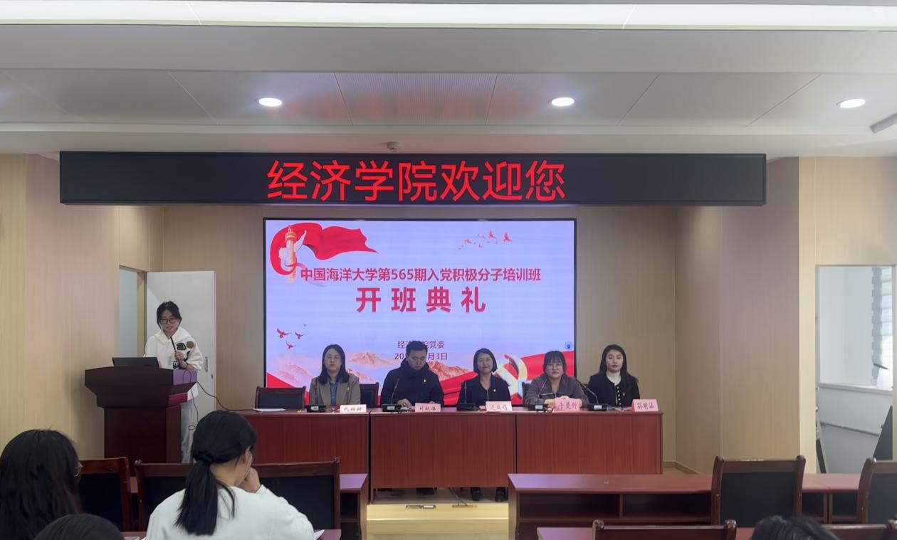 铁心向党担使命,信念如炬永向党。开班典礼在《国际歌》中拉开序幕,迟瑞娟发表致辞。她表示参加本次入党积极分子培训班学习,是学员们涵养家国情怀、践行培根铸魂的一次重要契机,是大家成长为胸怀蓝色梦想、堪当时代重任优秀人才的一次集中历练。她介绍了开班计划和学习要求,本期培训班采取课堂教学、研讨教学、实践教学等方式,将线下集中授课与个人线上自学课程相结合,对积极分子进行体系化、规范化的培训。牛曼竹、刘航语宣读第565期入党积极分子培训班学员名单和分组情况。培训班学员代表、经济学院2024级国际经济与贸易班本科生朱冰灵同学进行了发言。她表示,这次入党积极分子的培训,是党组织对同学们的信任,也是一次宝贵的学习机会。她积极号召大家,作为一名入党积极分子,应以最饱满的热情投入学习,认真完成每一项任务,并在未来的学习生活中不断接受党组织的考验。