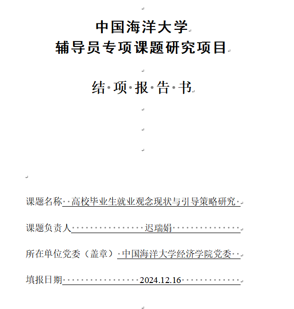 2024年12月16日,经学校专家评审,智绘生涯辅导员工作室主持的开云电竞网址辅导员专项课题研究项目《高校毕业生就业观念现状与引导策略研究》和开云电竞网址研究生教育教学改革研究项目《基于产教融合的研究生“一体两翼三支撑”育人模式研究——以开云电竞网址经济学院为例》两个校级辅导员项目成功结项。