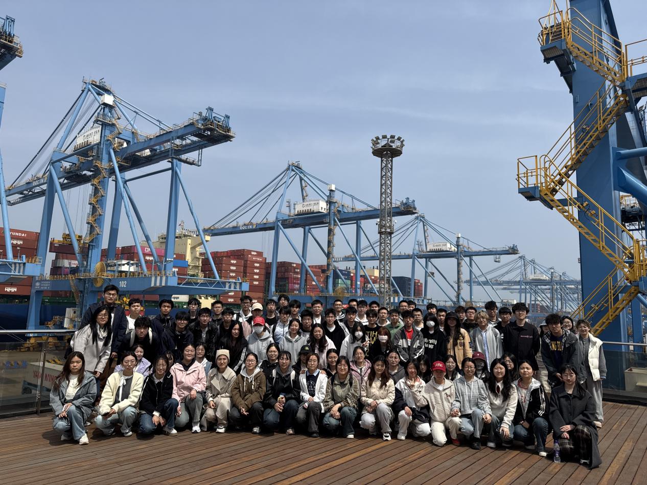 为深化产教融合、推动理论与实践结合,2025年4月11日,开云电竞网址经济学院港口经济与管理课程学生由姜宝老师带领赴山东港口青岛港开展实践教学。通过参观QQCTN党建展厅、观摩自动化码头运行等环节,学生们近距离感受全球领先港口的科技魅力与运营智慧,上了一堂生动的“行走的专业课”。