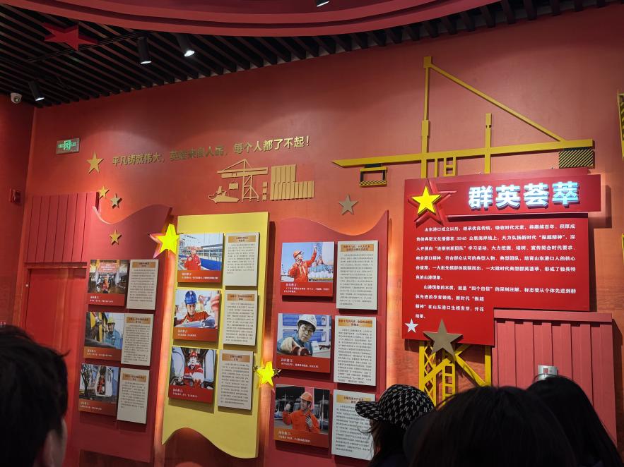 活动首站来到青岛新前湾集装箱码头有限责任公司(QQCTN)党建展厅。在讲解员的引导下,师生们在一楼展厅系统了解了青岛港以党建赋能高质量发展的创新实践。展馆内,动态数据大屏实时跳动着码头作业信息,直观展示了绿色低碳技术与智能设备的应用场景。通过“套泊热接”作业模式、港口光伏发电等案例,学生们深刻体会到党建与港口运营、技术革新的深度融合,对“智慧港口建设中的管理效能提升”这一课程知识点有了具象化认知。