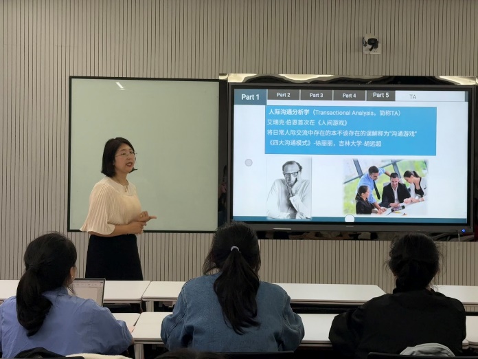 讲座伊始,经济学院党委副书记迟瑞娟以理论导入为切入点,系统阐释人际沟通分析学(TA)中的PAC理论,该理论将个体在沟通中的心理状态分为三种自我状态,即父母自我状态(Parent)、成人自我状态(Adult)和儿童自我状态(Child),指出这三种状态分别对应不同的思维模式、情绪反应与行为特征,深刻影响着人际沟通的实际效果。为增强理论的直观性,迟瑞娟书记引入校园生活的典型案例让在座的各心理委员深入理解PAC理论的实践应用价值。
