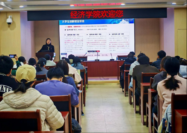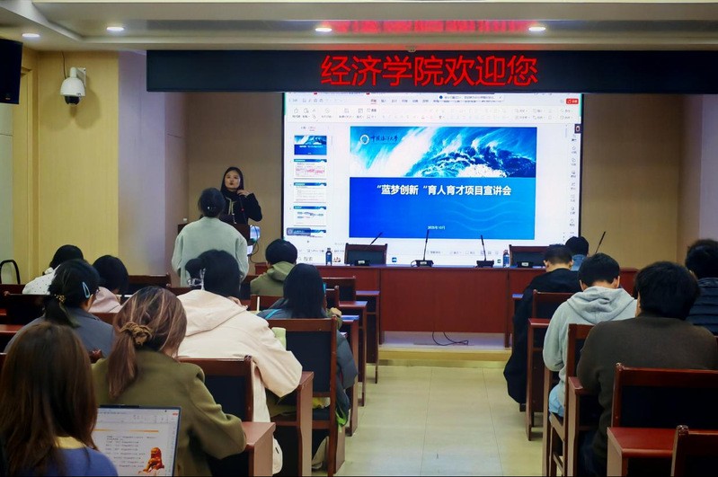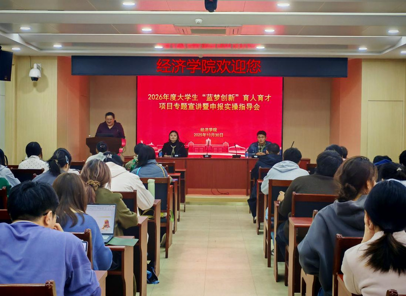 为扎实推进大学生创新创业教育工作,提升学生项目申报质量与实操能力,经济学院于10月30日举办了2026年度大学生“蓝梦创新”育人育才项目专题宣讲暨申报实操指导会。会议邀请了教务处李方圆老师和经济学院博士生李宽进行指导讲授。经济学院教学秘书黄丽梅老师主持了会议。
