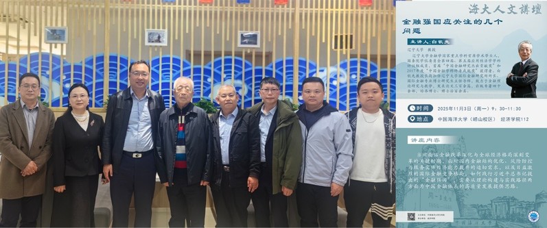 为深入探讨新时代金融高质量发展路径,11月3日经济学院邀请著名经济学家、辽宁大学白钦先教授开展题为《金融强国应关注的几个问题》的海大人文讲坛学术讲座。学院教师及相关专业的60余名博士、硕士研究生在经济学院112会议室共同聆听白钦先教授的讲授。会议由经济学院副院长李剑主持。