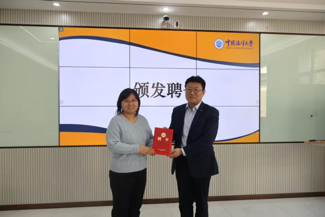 刘妍为刘华君颁发经济学院学生职业发展导师聘书。