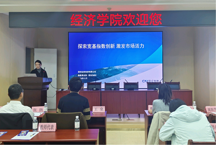 深圳证券信息公司指数事业部经理黄颖带来题为《探索宽基指数创新 激发市场活力》的讲座。她深入讲解了指数的编制及应用,并对市场表征指数进行了详细分析,阐述了其作为业绩基准在投资决策中的重要意义。