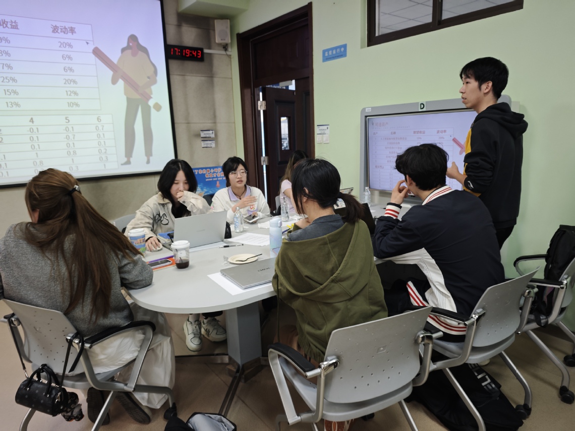 各小组围绕客户需求设计差异化方案,或侧重保守配置,或选择平衡策略,或关注市场时机布局。在成果展示环节,各小组分别阐述了方案的设计逻辑与思路,老师从专业角度进行点评,肯定了学生在实操过程中对金融工具的运用和对财富管理逻辑的理解。