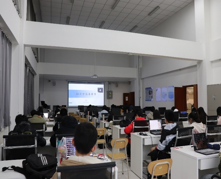 中心于2021年12月9日和12月12日两天对参赛选手进行3D打印技术和设计软件的培训。12月9日,中心老师为参赛同学科普3D打印技术知识,并对3D打印机的结构、性能以及使用方法等方面进行详细讲解。12月12日,为同学们讲解设计软件基础操作。通过两天的培训,为参赛同学后期的作品设计制作提供了技术支持。