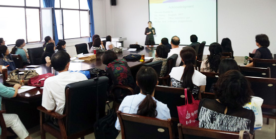 然后,大外部副系主任赵群老师做了题为“大学外语教学目标的重新定位及课程体系的调整完善”的专题讲座,就大学外语教学改革中的EGP、ESP、EAP等热点问题、我校大学外语课程现状及拓展课程的设置与建设等问题做了较为深入的分析和探讨,并提出了一些新的思路和设想。