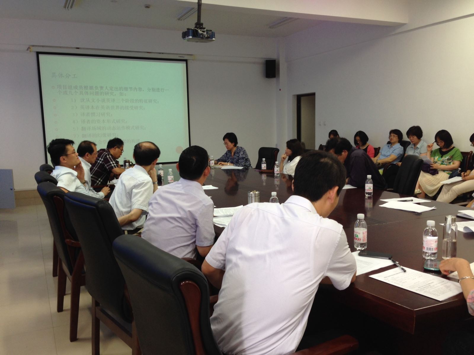 2015年6月24日,在文科处的指导和监督下,我院徐敏慧教授主持的国家社科项目《沈从文小说英译的社会学研究》开题答辩,在外国语学院N217会议室举行。答辩会由文科处金天宇处长主持,专家评审小组由****、欧洲社科院院士、清华大学王宁教授担任主席,开云电竞网址外国语学院院长、博士生导师杨连瑞教授以及文新学院博士生导师朱自强教授作为专家成员出席开题答辩。专家们就该课题的研究意义给予了充分肯定,针对其社会学研究路径的研究范围和调查方法,提出了深刻见解和指导性意见。答辩顺利完成,外国语学院30多位教师及研究生参加了开题答辩会。 (院学科办报导)