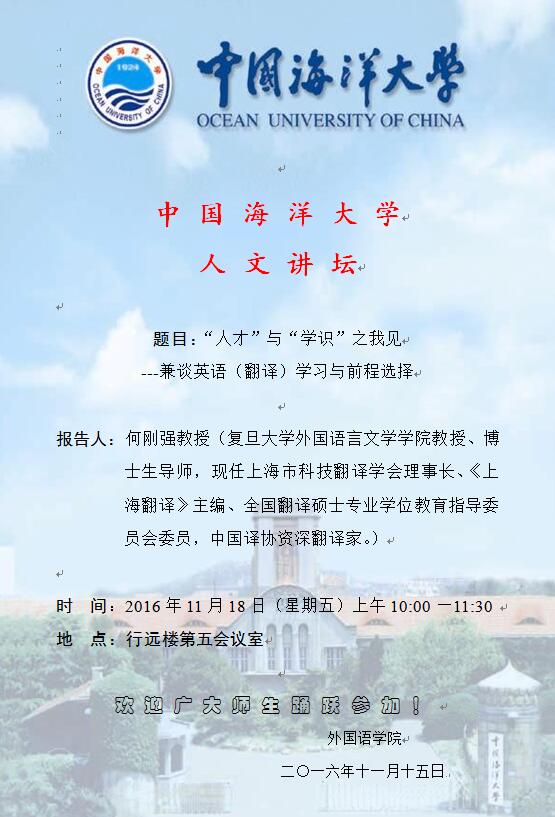 外国语学院关于近期开展系列“人文讲坛”的通知(11月18-24日)