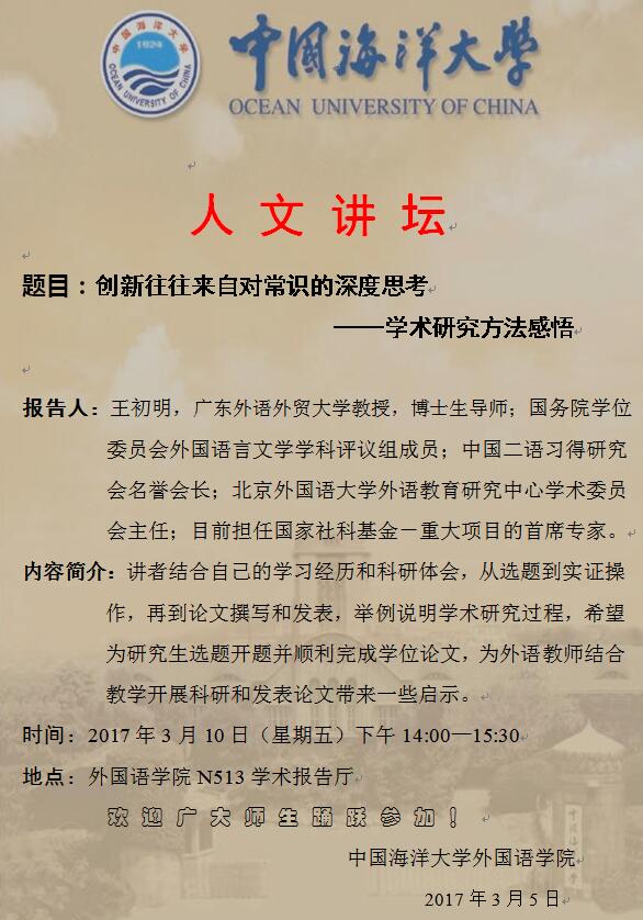 海大人文讲坛预告:创新往往来自对常识的深度思考 —— 学术研究方法感悟