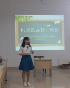 6月2日晚,2016级英语系诚信教育主题活动在外国语学院N107教室顺利开展。来自英语系两个班的共50名同学参加了此次活动,外国语学院兼职辅导员杨硕学姐,英语系班导王翔宇学长也参加了本次活动。此次活动主要以“朗读者”的形式,配以游戏等环节向同学们讲述诚信故事,进行诚信教育。活动2016英语2班郭俊卿同学主持。
