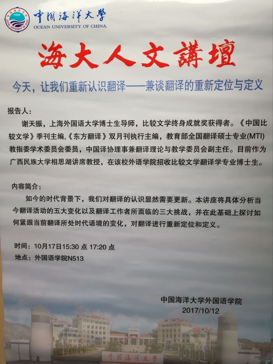 【讲座通知1】今天,让我们重新认识翻译——兼谈翻译的重新定位与定义——谢天振