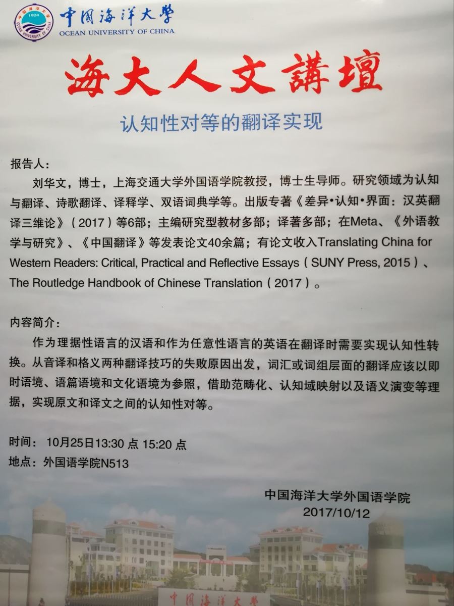 【讲座通知2】认知性对等的翻译实现——刘华文
