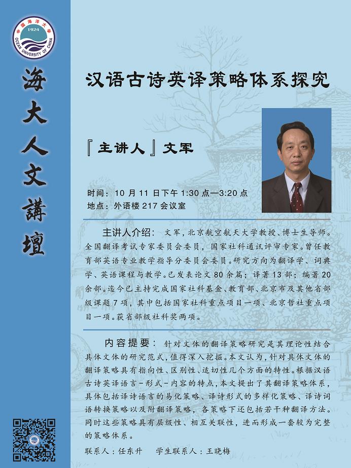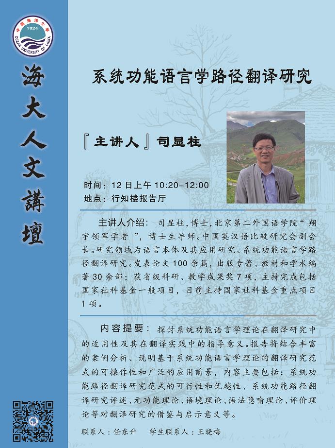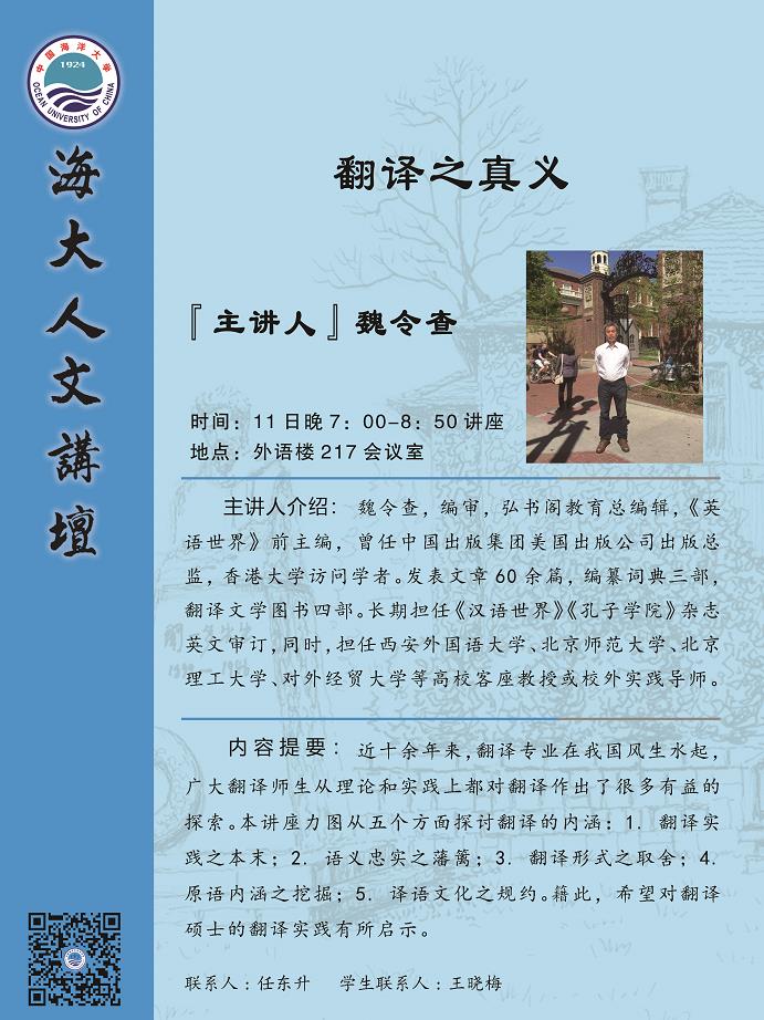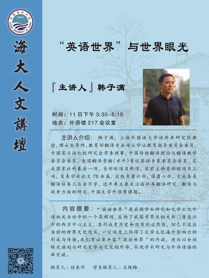 【学术讲座通知】系列海大人文讲坛预告 —— 邢三洲、文军、韩子满、魏令查、司显柱