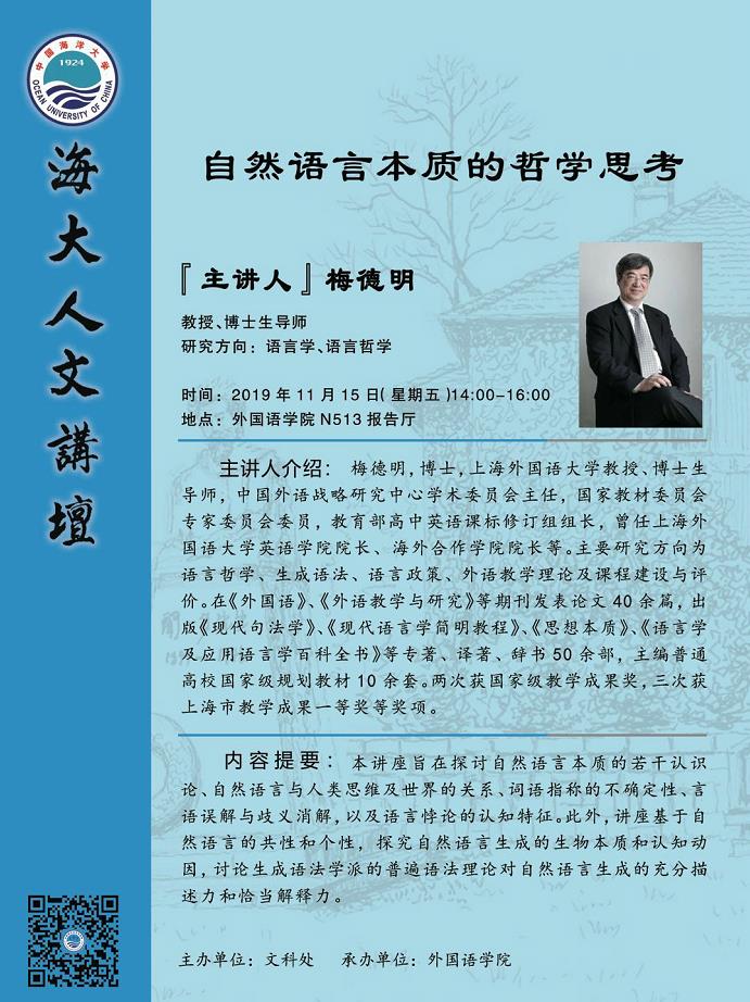 【学术讲座通知】自然语言本质的哲学思考 —— 梅德明