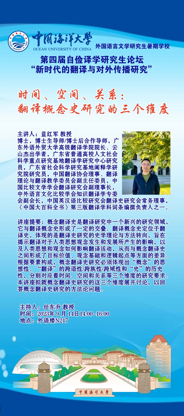 【暑期学校讲座预告】时间、空间、关系:翻译概念史研究的三个维度——蓝红军教授