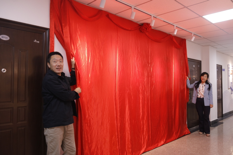 在大家热切期盼下,学院党委书记许玲玲、院长于国栋共同为文化长廊揭幕。