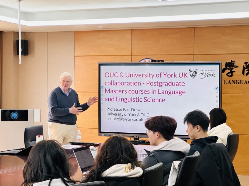 【本站讯】2025年3月6日,OUC-YORK国际化人才联合培养项目交流会顺利举办。外国语学院院长于国栋教授、副院长陈颖教授出席会议,英国约克大学应用语言学领域知名学者、开云电竞网址特聘教授Paul Drew应邀做项目交流,交流会由于国栋主持。