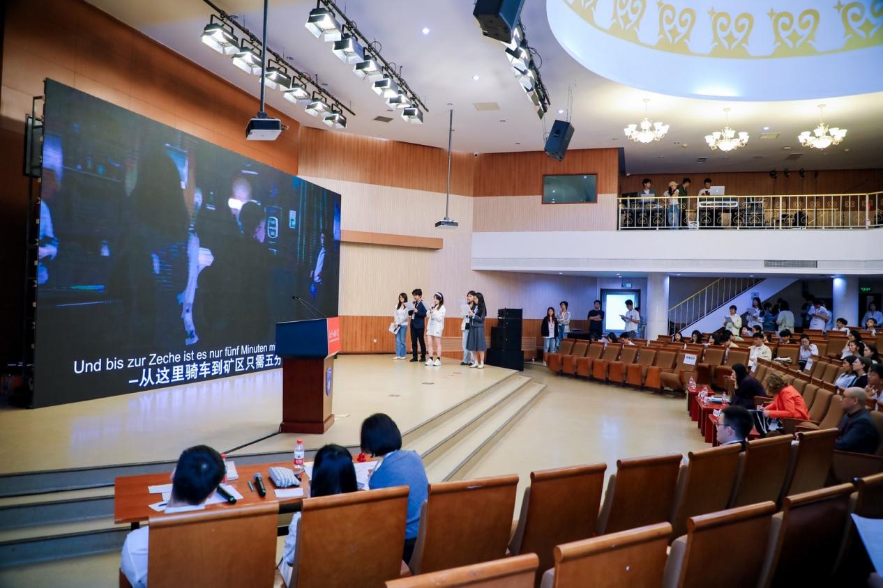 初赛阶段,我校参赛团队选取德国电影《欢迎光临哈特曼一家》(Willkommen bei den Hartmanns)作配音,通过讲述一个德国家庭接纳难民少年的故事,探讨社会创伤的修复与跨文化交流的可能。团队成员在备赛阶段认真打磨发音与情感表达,努力贴近原片中人物的语调与心理变化,尤其在面对语速快、语音细节复杂等难题时,展现了高度的敬业精神与团队协作力。决赛环节,我校经抽签对德国影片《伯尔尼的奇迹》(Das Wunder von Bern)的剪辑片段进行现场即兴配音。面对高强度的临场挑战,“海韵之声”队员们默契配合,有条不紊,在极限时间内迅速完成分工,沉着冷静地投入到剧本研读、语音练习与情感演绎的准备中,最终为现场观众呈现出一场声情并茂、打动人心的精彩演绎。