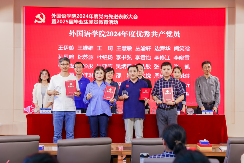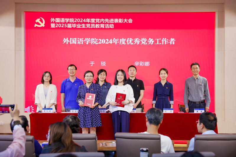 【本站讯】6月12日下午,外国语学院举办2024年度党内表彰大会暨2025届毕业生党员教育活动。外国语学院党委书记许玲玲,院长于国栋,副院长陈士法、陈颖、王遥参加大会。会议由学院党委副书记、副院长戴淑妮主持。