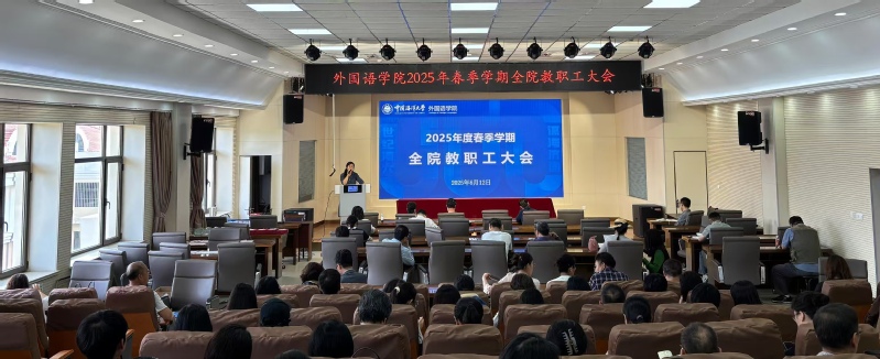 【本站讯】6月12日,外国语学院全体教职工大会在外语楼召开。学院党政领导班子成员、全体教职工参加会议,会议由党委书记许玲玲主持。