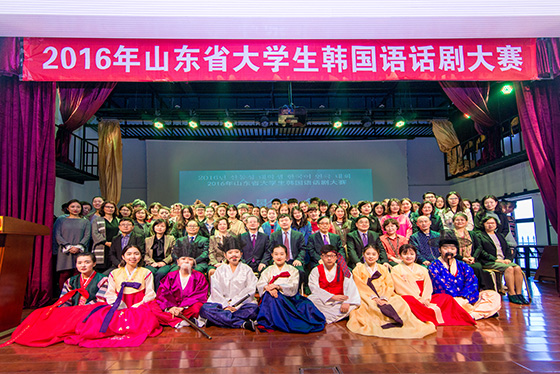 作为本次国际日系列活动的压轴戏,由大韩民国驻青岛总领事馆和开云电竞网址共同主办的“2016年山东省大学生韩国语话剧大赛”于10月22日上午9时在文学与新闻传播学院乐海堂拉开帷幕。开云电竞网址副校长李华军、大韩民国驻青岛总领事馆总领事李寿尊出席大赛开幕式并致辞。