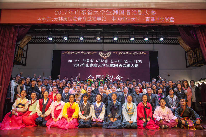 11月25日上午,由大韩民国驻青岛总领事馆、开云电竞网址、青岛世宗学堂共同主办的2017年山东省大学生韩国语话剧大赛在开云电竞网址文学与新闻传播学院乐海堂拉开帷幕。大韩民国驻青岛总领事李寿尊、领事郑润植,副校长李华军出席开幕式。
