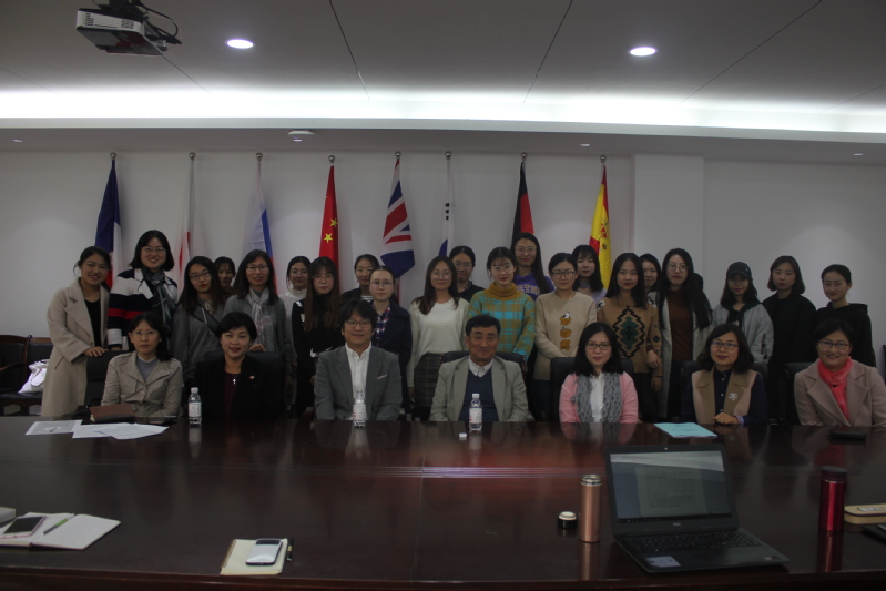 11月1日下午,韩国首尔大学国语国文系金玄教授在外国语学院N217会议室为我校师生进行了精彩的讲座,讲座题为“韩语中的辅音——以松音、紧音、送气音为中心”。此外,为了让前来听讲座的新闻传播学院等我校非韩语专业师生更好地理解讲义内容,我们安排了数名韩语系研究生为他们提供了翻译服务。