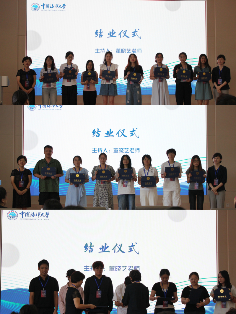 闭幕式上,二位学生代表用韩语发表了心得体会。他们表示,通过四位教授的讲座,对韩国学有了更加深刻的认识。同时在中韩建交33年之际,他们表达了要积极促进中韩文化交流,共同夯实中韩友谊的意愿。最后,孙有庆教授和李海英教授为同学们颁发结业证书。