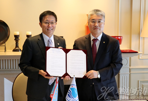 于志刚校长(右)与周行一校长签署合作协议
