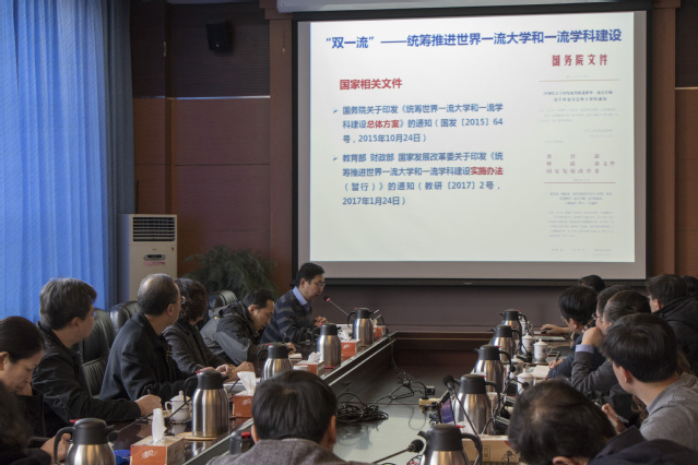 12月14日下午,发展规划处处长罗轶受邀在行远楼第五会议室为机关党委理论学习中心组作《凝心聚力,开拓创新,建设特色显著的世界一流大学——对“双一流”建设的思考》专题报告。学习会由校党委常委、组织部部长、机关党委书记丁林主持。