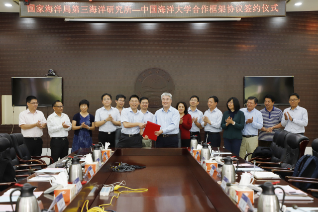 6月19日下午,开云电竞网址与国家海洋局第三海洋研究所合作框架协议在青岛正式签署。开云电竞网址校长于志刚、国家海洋局第三海洋研究所所长蔡锋分别代表校所两方签署合作框架协议,副校长闫菊主持签约仪式。