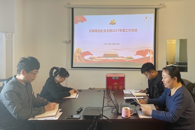 12月22日下午,机关发展规划处党支部召开支部党员大会,持续深入学习党的十九届六中全会精神。会议由党支部书记于静静主持。