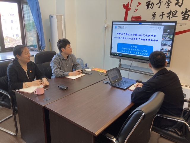 2022年11月21日上午,机关发展规划处党支部与三亚海洋研究院教工党支部结对开展学习贯彻党的二十大精神主题党日活动,邀请马克思主义学院党委副书记、副院长王付欣教授作题为“开辟马克思主义中国化时代新境界——深入学习党的二十大报告中的新思想新论断”专题讲座。