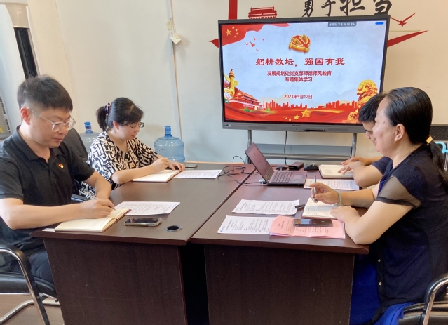 为深入学习贯彻落实习近平总书记教师节重要指示精神,9月12日,发展规划处党支部以“躬耕教坛,强国有我”为主题,组织开展师德师风教育专题集体学习。会议由党支部书记于静静主持。