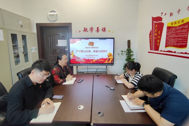 党的群众纪律是党的各级组织和全体党员坚持以人民为中心的发展理念和处理党群关系时必须遵守的行为规则,是密切党同人民群众血肉联系、克服脱离群众危险的重要保证。于静静通过讲述党史中“一个苹果也是纪律”的故事,使支部党员深刻体会到中国共产党人传承百年对纪律的敬畏,进一步阐释了新时代严明群众纪律的重要意义,并通过回顾《中国共产党纪律处分条例》中乱作为、不作为、假作为、慢作为等对损害群众利益的违纪行为的规定,要求全体党员干部模范遵守群众纪律,坚持师生至上、坚持问题导向,锤炼务实作风,带头走好群众路线,切实提高服务师生的能力本领,把心系师生体现到履职尽责全过程各方面。