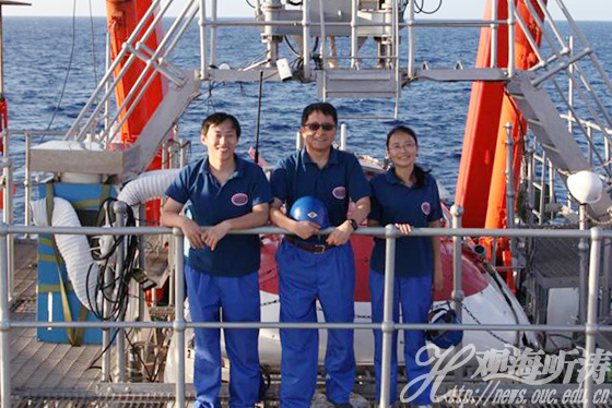 2017年5月,在青岛海洋科学与技术国家实验室鳌山创新计划项目的支持下,徐景平教授和毕乃双副教授作为深潜科学家执行了“蛟龙”号第五次和第七次下潜作业任务、赵彦彦教授作为上船科学家参加“大洋38航次”第二航段科学考察。