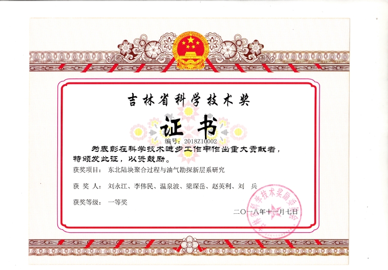 李三忠教授团队完成的成果“胶辽吉带古元古代构造-热演化与早前寒武纪构造体制巨变”获教育部自然科学一等奖;王厚杰教授团队完成的成果“黄河入海沉积物的‘源—汇’过程及其沉积效应”获教育部自然科学二等奖;刘永江教授和李三忠教授等共同完成的研究成果“柴达木盆地与周缘地质构造演化重大研究进展与油气勘查应用”荣获自然资源部国土资源科学技术二等奖;刘永江教授作为第一完成人的研究成果“东北陆块聚合过程与油气勘探新层系研究”荣获吉林省科学技术奖自然科学奖一等奖。