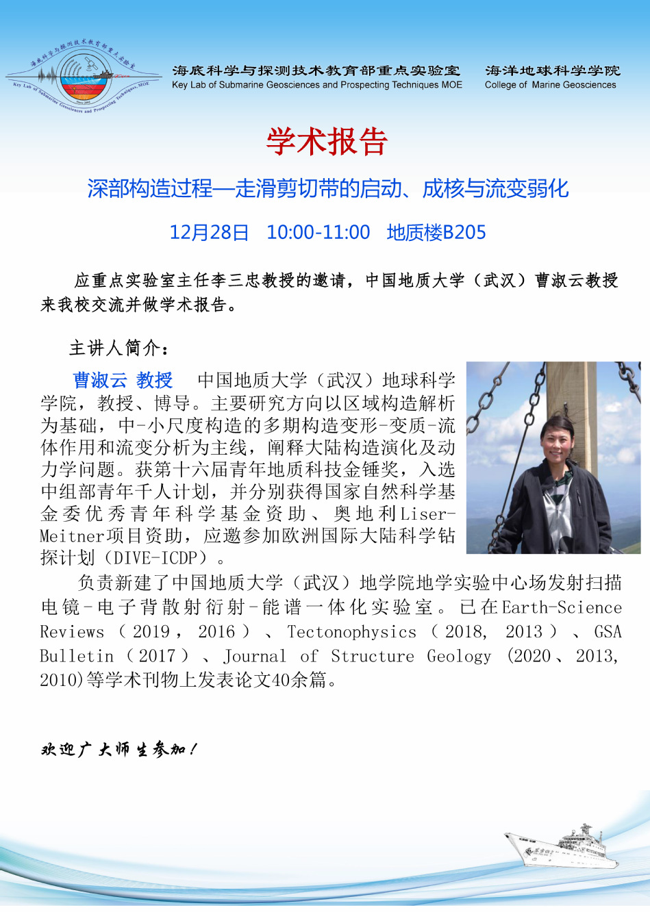 曹淑云:深部构造过程—走滑剪切带的启动、成核与流变弱化