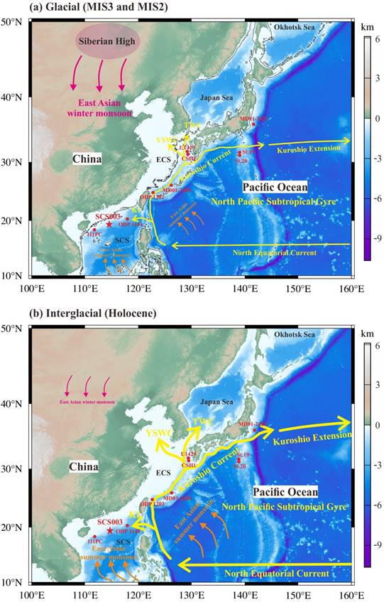 Liu, S., Zhang, Z., Yang, J., Zhao, Y., Zhang, X., Hu, B., Zhang, G., Yang, D., Sun, G., Wei, H., Wu, J., Guo, X., Zhang, Y., Li, S., Zhu, J., 2024. El Niño-Southern Oscillation and East Asian Monsoon controlled Kuroshio Current evolution over the last 42 kyr.