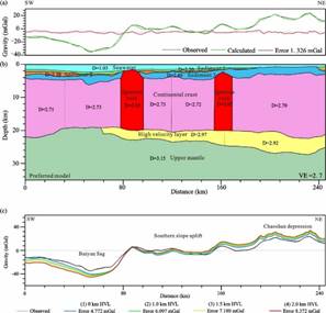 本文使用重力模拟方法检测了南海北部珠江口盆地下地壳高速层的不连续分布和连续分布两种模式,通过构建不同的地壳结构模型和开展最优地壳结构的重力模拟,发现下地壳高速层的连续分布模式很好的对应珠江口盆地的地壳减薄特征和对地壳结构的重力异常响应, 提出珠江口盆地下地壳高速层是由南海扩张之后高温熔融的地幔长期底侵作用下形成。
