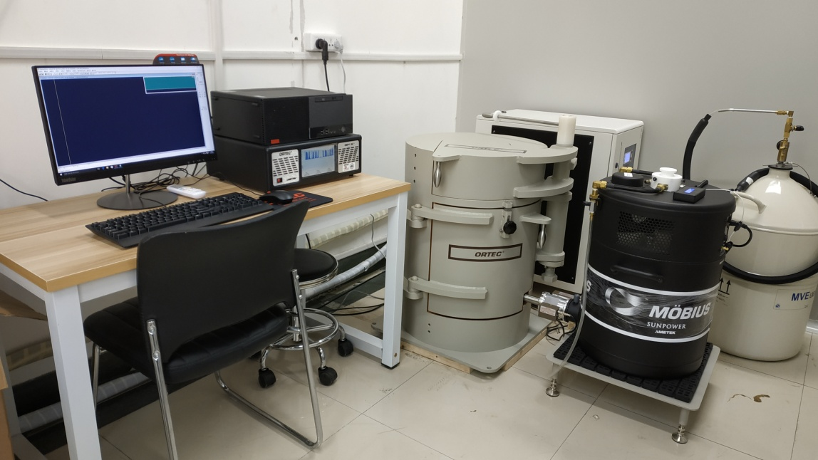 用于固体、沉积物中铅、镭、铯等放射性核素测定;仪器包括检测器、铅室、标准源等。可进行海洋地质百年尺度的年代(210Pb)和沉积速率测定,主要用于海洋沉积、地球化学、环境地质等研究领域。