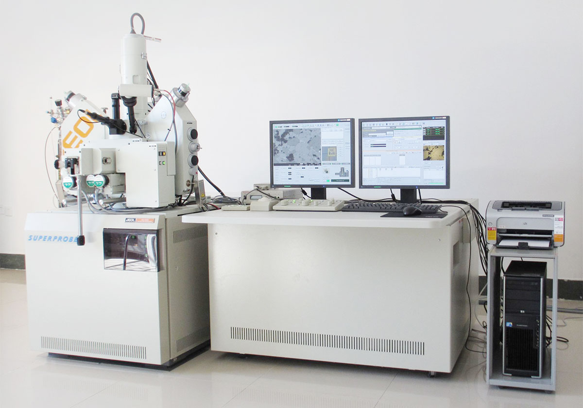 电子探针显微分析仪(型号: JXA-8230),配备三道波谱仪、9块分光晶体,同时配有阴极发光系统、相分析软件和独居石化学测年软件。仪器可实现40-10000倍的图像观察,空间分辨率可达5nm,获得高品质的背散射图像(BSE)、二次电子图像(SEI)和阴极发光图像(CL),可进行B-U元素的定性和定量分析。