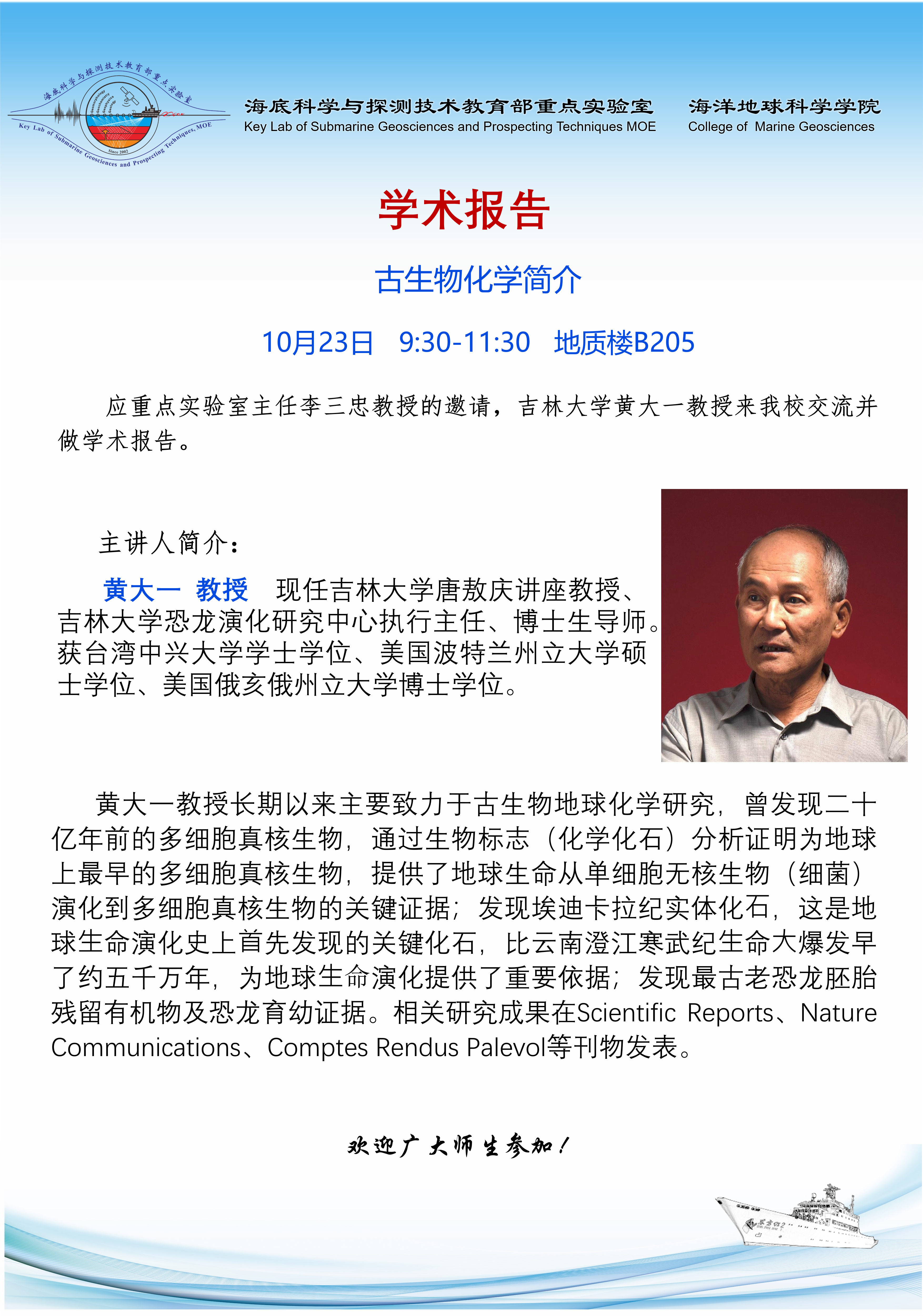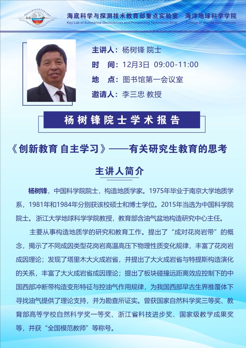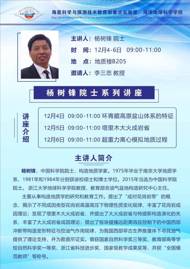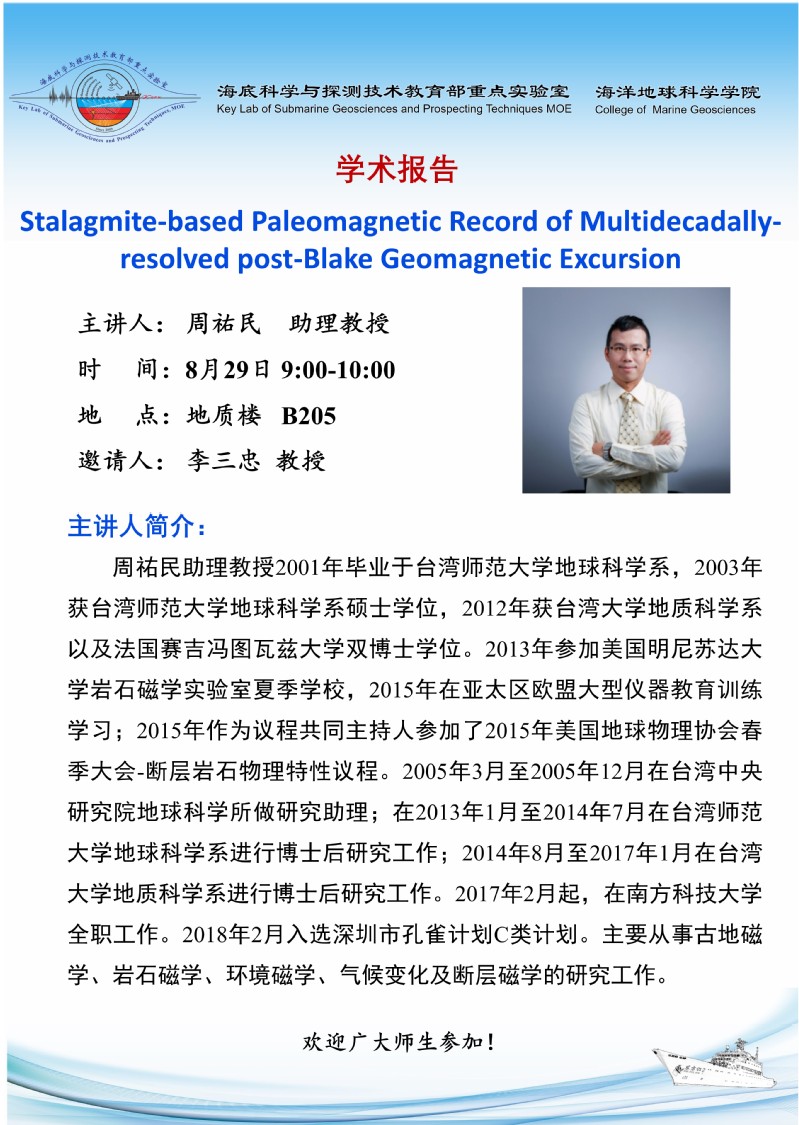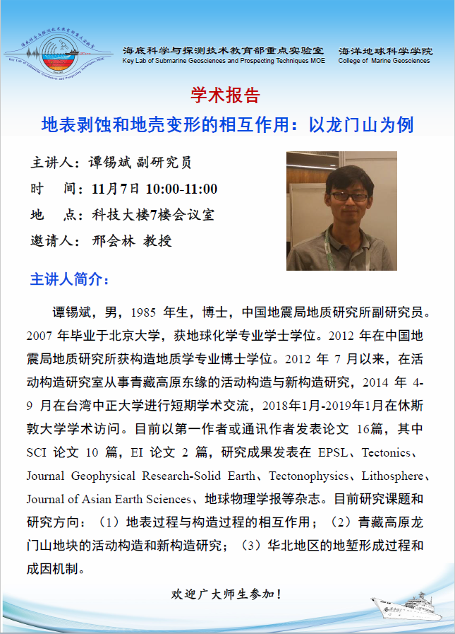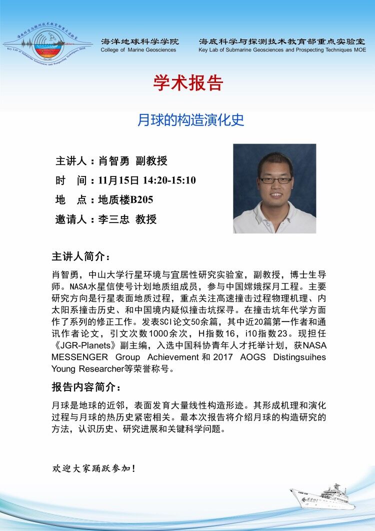 应重点实验室主任李三忠教授邀请,兰州大学张旭教授来我校交流并做学术报告。