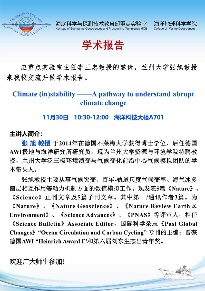 张旭:Climate (in)stability ——A pathway to understand abrup...