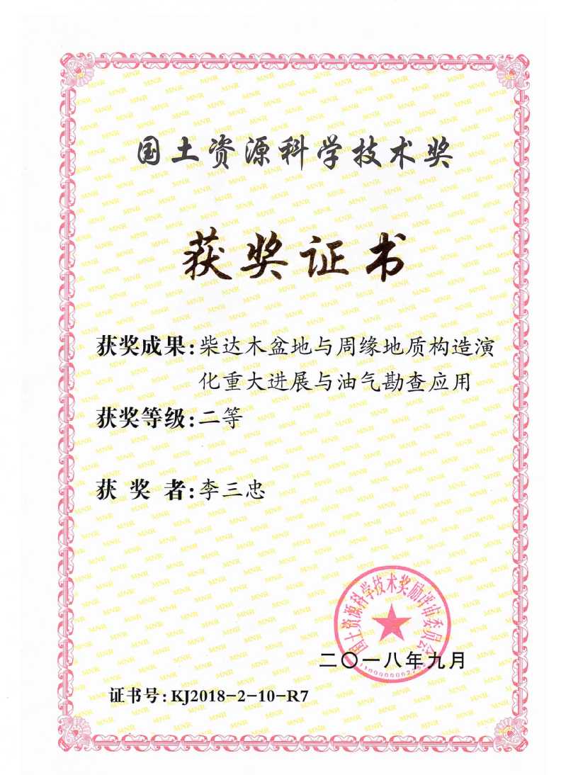 实验室教授获2018年度自然资源部国土资源科学技术奖二等奖